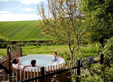 There are four bedrooms (three king, one twin) and four bathrooms, a large boot room for storage, washing and drying, large first floor balcony with seating and views over the Downs, outside seating area (ground floor) welcome drink of locally sourced wine. Hot tub available all year round. By prior notice, guests can arrange in-house spa treatments (facials, massages), in-house wine tasting, private catering and bike hire.