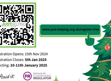 We will be collecting real Christmas trees on Friday 10th and Saturday 11th January 2025. The trees will then be chipped locally . If you would like your tree collected please visit: www.just-helping.org.uk/registertree to book and donate.